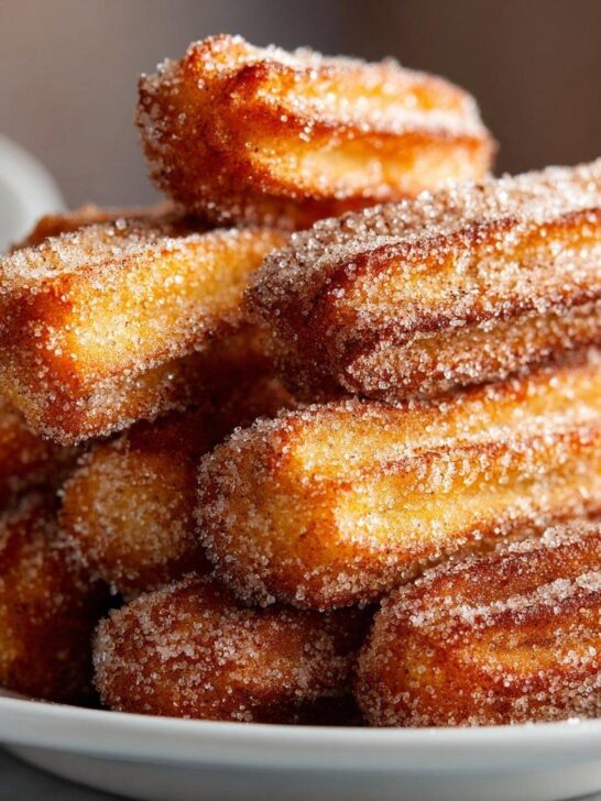 Serve warm. These churro bites are crispy, sweet, and perfect for dessert.