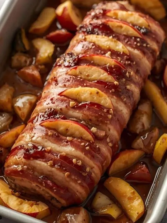 7. Pork Tenderloin in Oven with Bacon and Apples