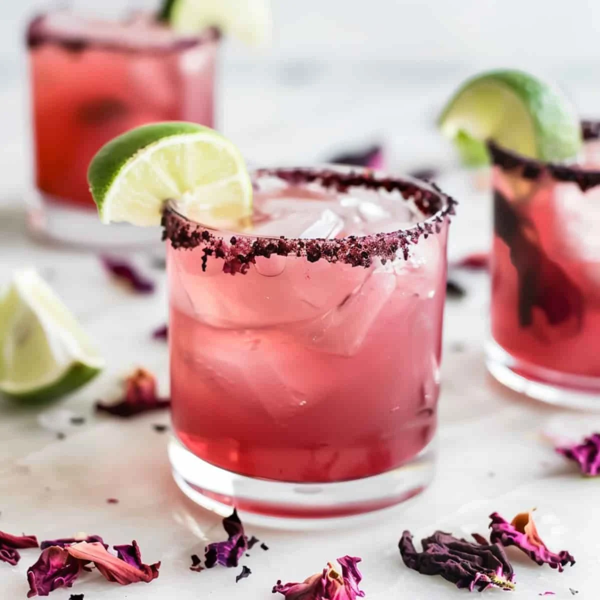 Blend all the ingredients with ice to create a frozen version of the Hibiscus Margarita, perfect for hot summer days and adding a refreshing texture to the drink.