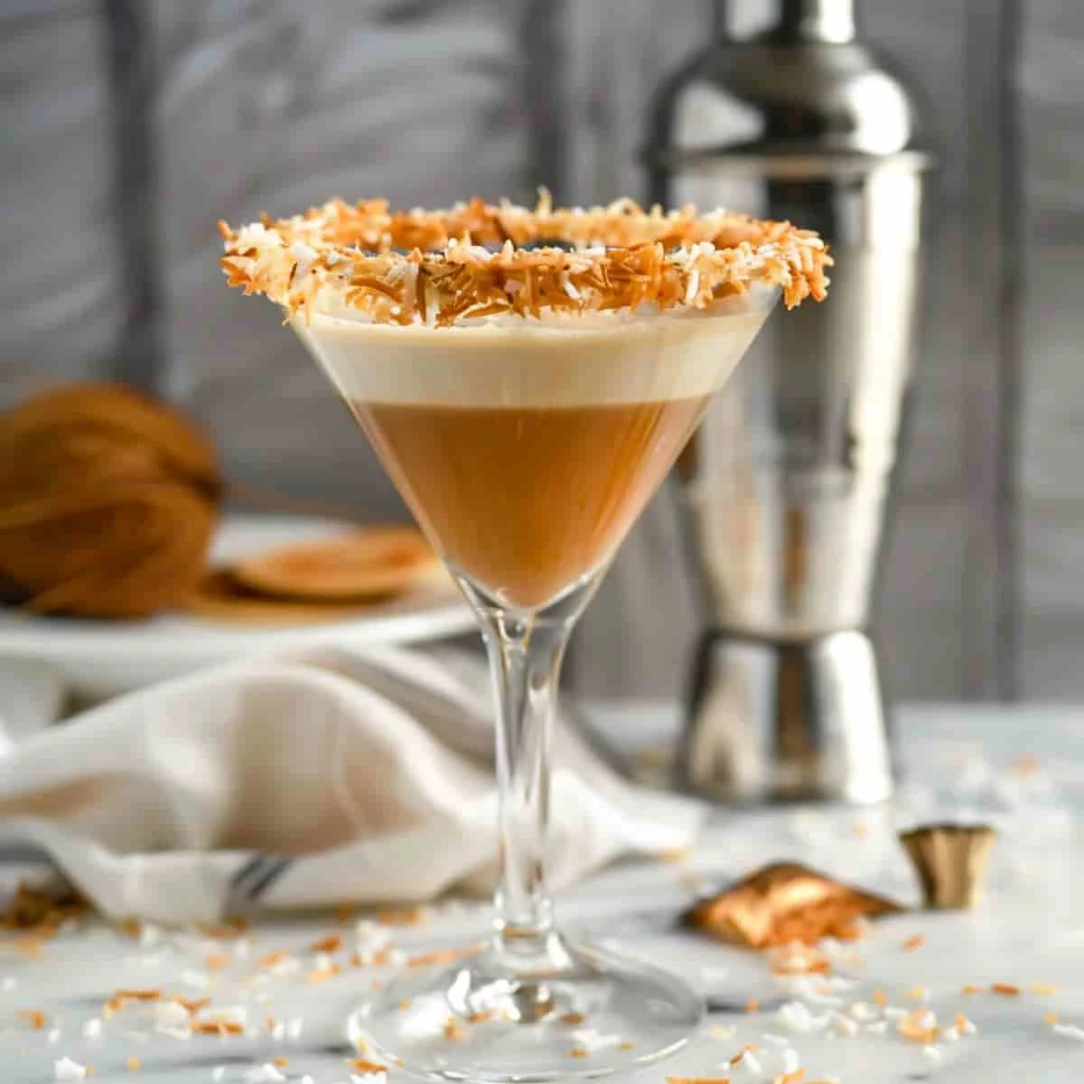 You need to try the Samoa Martini, a decadent cocktail inspired by the beloved Girl Scout cookies of the same name, also known as Caramel DeLites. This martini brings together the irresistible flavors of dark chocolate, coconut, and caramel for a luxurious treat reminiscent of the classic cookie. Made with dark chocolate liqueur, coconut vodka, caramel sauce, and a splash of coconut milk, this martini is a creamy and indulgent delight that captures the essence of Samoa cookies in every sip.