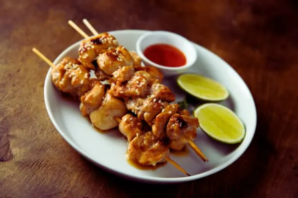 Skewered and grilled, these chicken bites are sticky, sweet, and zesty. The glaze gives a glossy look, and the taste? Sweet at first, then comes a kick of lime. So good you’ll lick your fingers clean.